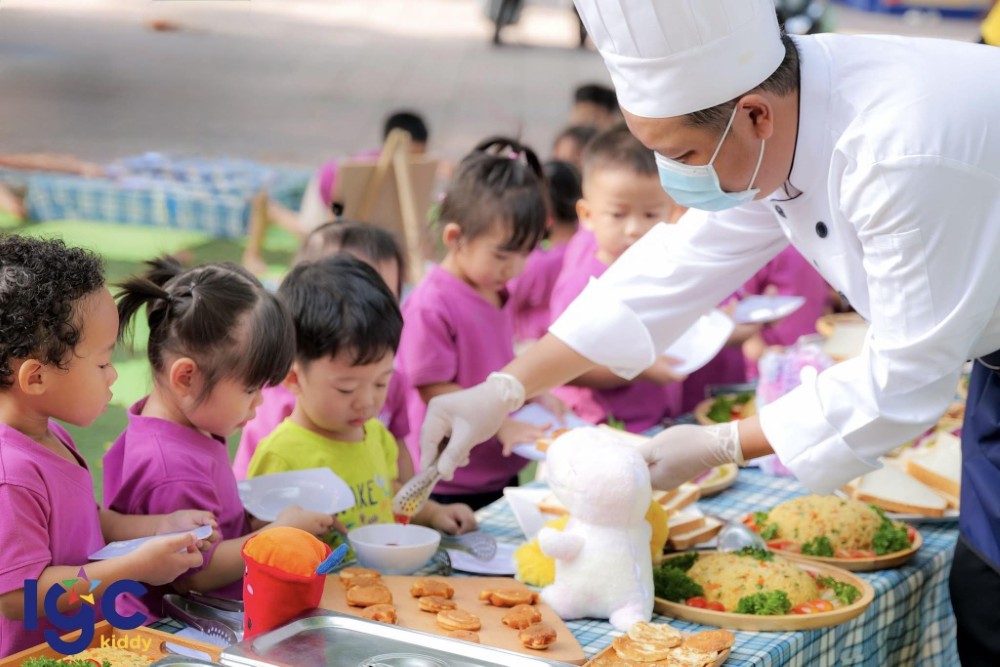 Đến với IGC Kiddy, trẻ không chỉ được thưởng thức những chiếc bánh ngon đầy đủ chất dinh dưỡng mà mỗi lần được tham gia vào Tiệc bánh là mỗi lần trẻ hào hứng được hoà mình vào không gian những bữa tiệc đầy màu sắc, các món bánh được lựa chọn đa dạng từ các nền ẩm thực thế giới: Nhật, Hàn, Châu Âu, Trung Hoa,....