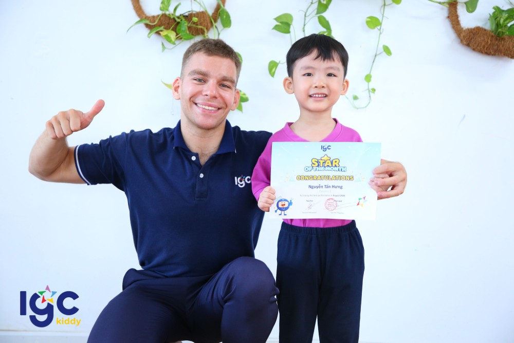 Lứa tuổi mầm non là là giai đoạn vàng để trẻ tiếp nhận ngôn ngữ mới và phát triển khả năng sử dụng Anh ngữ chuẩn quốc tế. Ngoài việc chương trình học cung cấp cho trẻ kiến thức tiếng Anh vỡ lòng cho đến đi sâu hơn vào các chủ đề thông qua các hoạt động thực hành, trải nghiệm, hình thức ”học mà chơi, chơi mà học" này giúp trẻ tiếp thu và hình thành tư duy Anh ngữ một cách tự nhiên, không gượng ép. Sau mỗi chủ đề lớn, trẻ được tham gia vào bài đánh giá năng lực qua hình thức nhận biết và nói 1-1 để giáo viên ghi nhận lại tình hình học tập của con.
