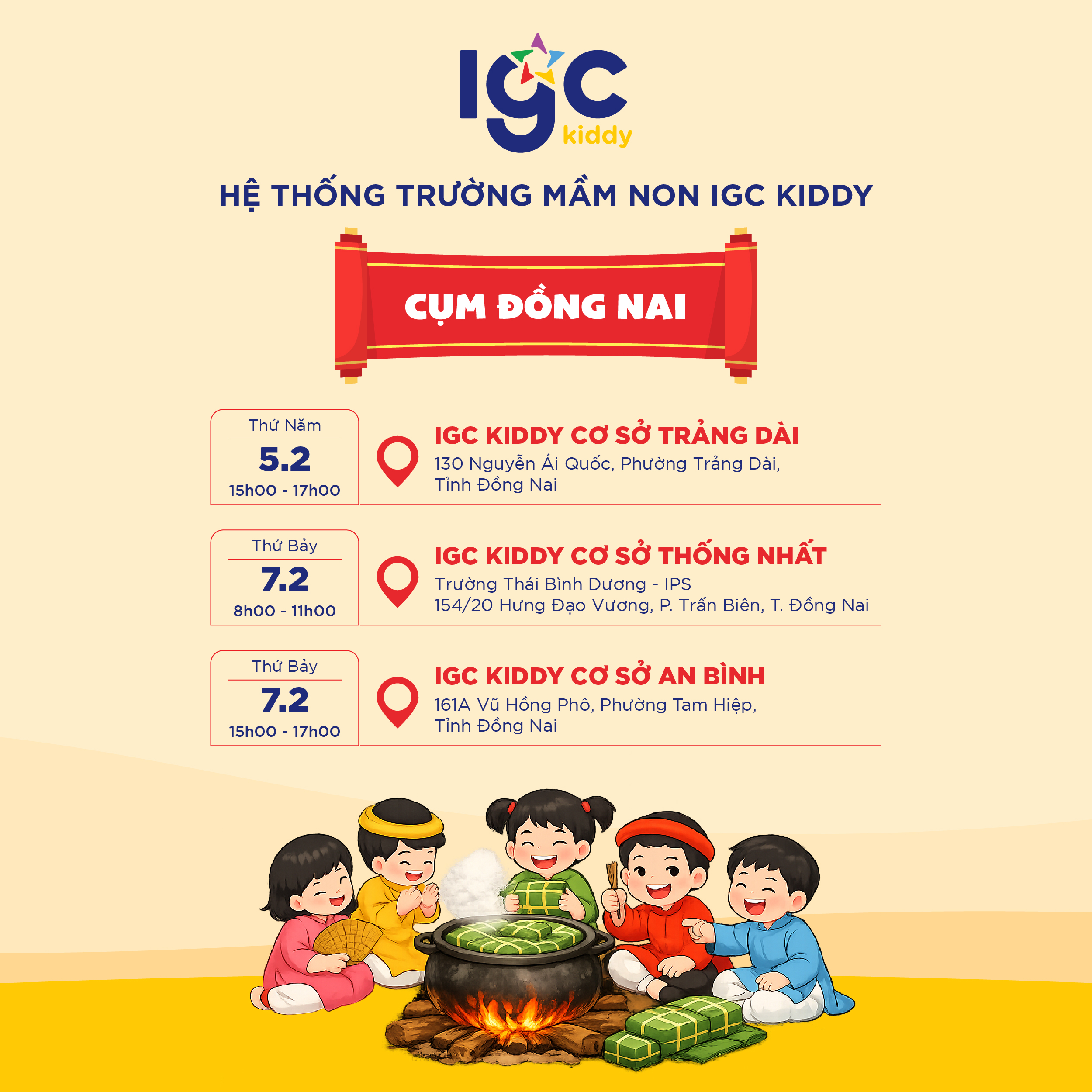Tết tại IGC Kiddy không chỉ là thời điểm giao mùa, mà là hành trình trải nghiệm để trẻ được chạm vào giá trị văn hóa, vui chơi cùng không khí Xuân và trưởng thành qua từng hoạt động ý nghĩa.