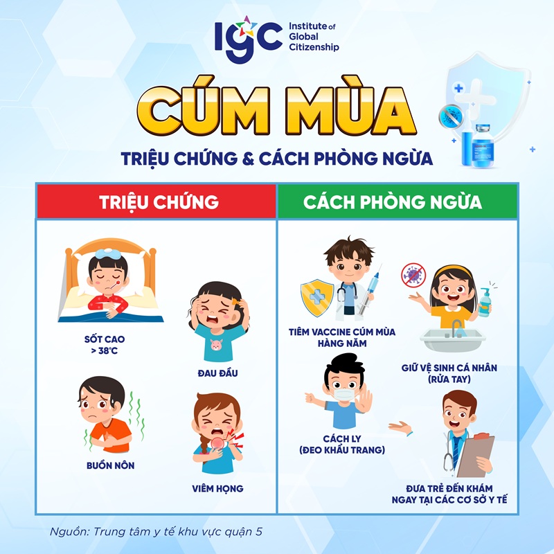 Ở giai đoạn này, việc “chủ động phòng ngừa” là chìa khóa để giữ an toàn cho trẻ và cả gia đình trước nguy cơ gia tăng của bệnh cúm mùa. Nếu phụ huynh cần thêm tư vấn, hãy liên hệ với đội ngũ chăm sóc sức khỏe của chúng IGC để được hỗ trợ.