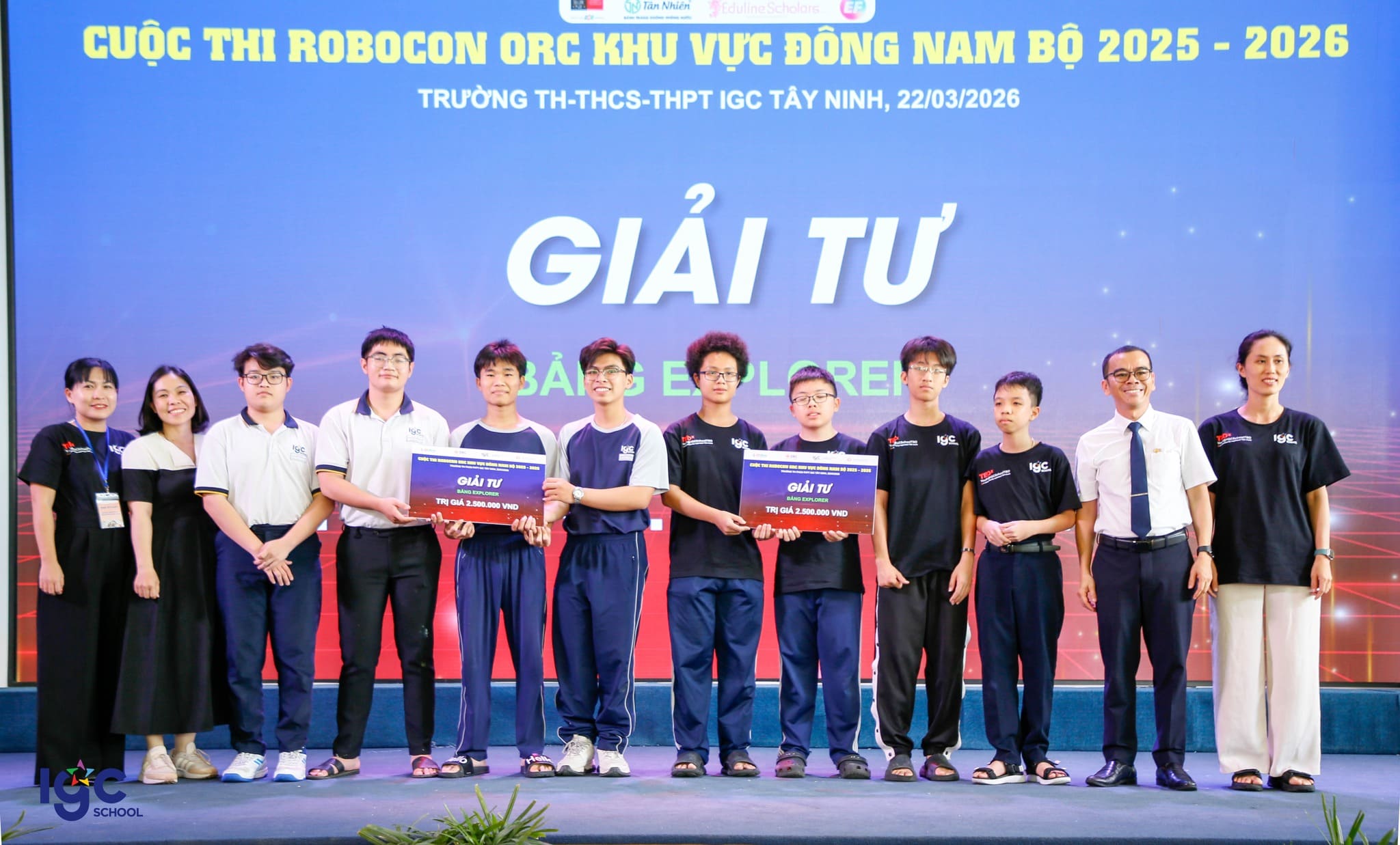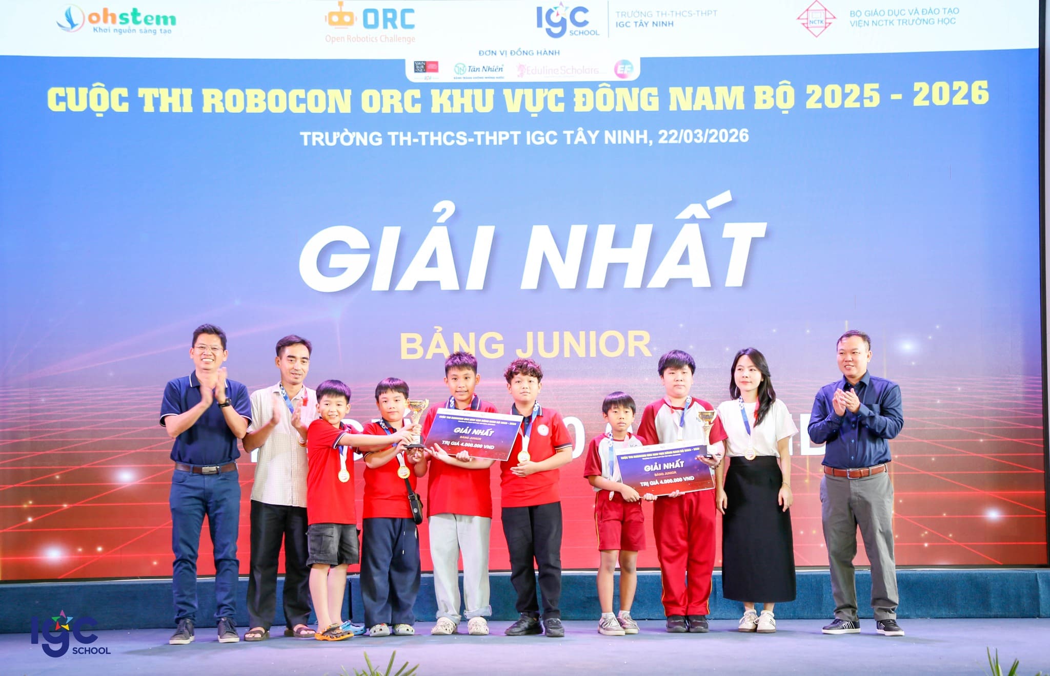 Cuộc thi Robocon ORC Đông Nam Bộ năm học 2025–2026 đã diễn ra sôi nổi trong hai ngày 21–22/3/2026 tại IGC Tây Ninh, quy 144 đội thi với hơn 500 học sinh đến từ 10 tỉnh, thành khu vực phía Nam. Các thí sinh tranh tài ở hai bảng: Junior (K1) dành cho học sinh tiểu học và Explorer (K2) dành cho học sinh THCS, THPT.